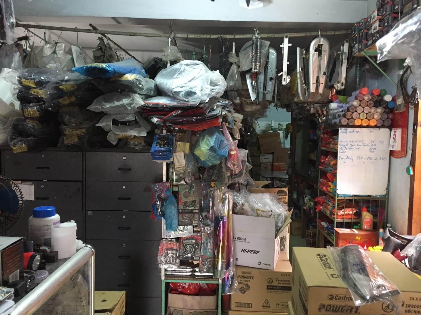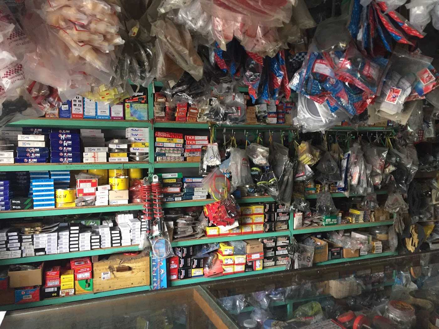The store engages in motorcycle spare replacements and other accessories.