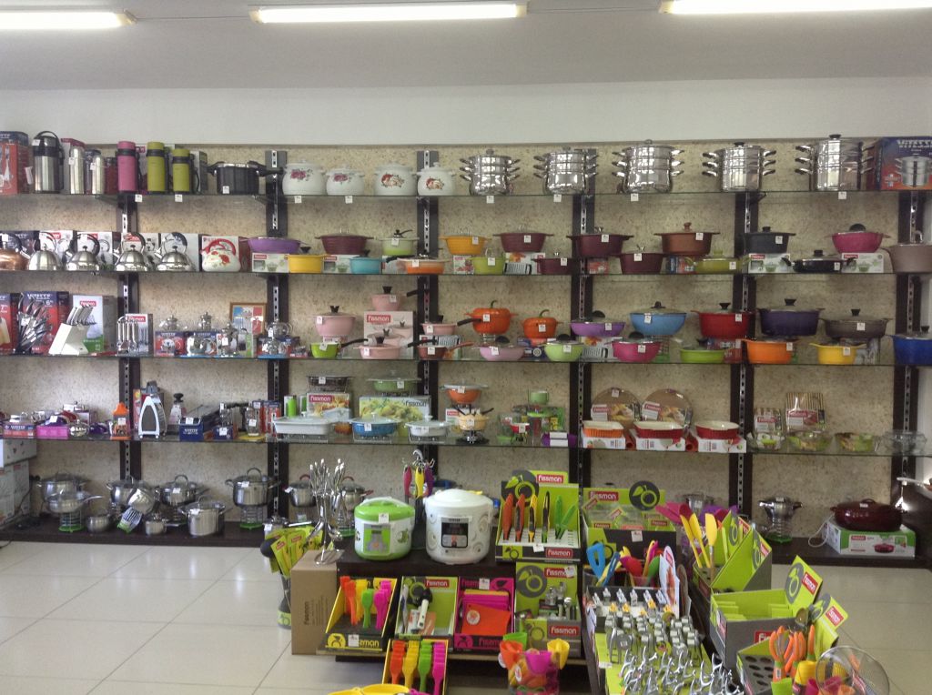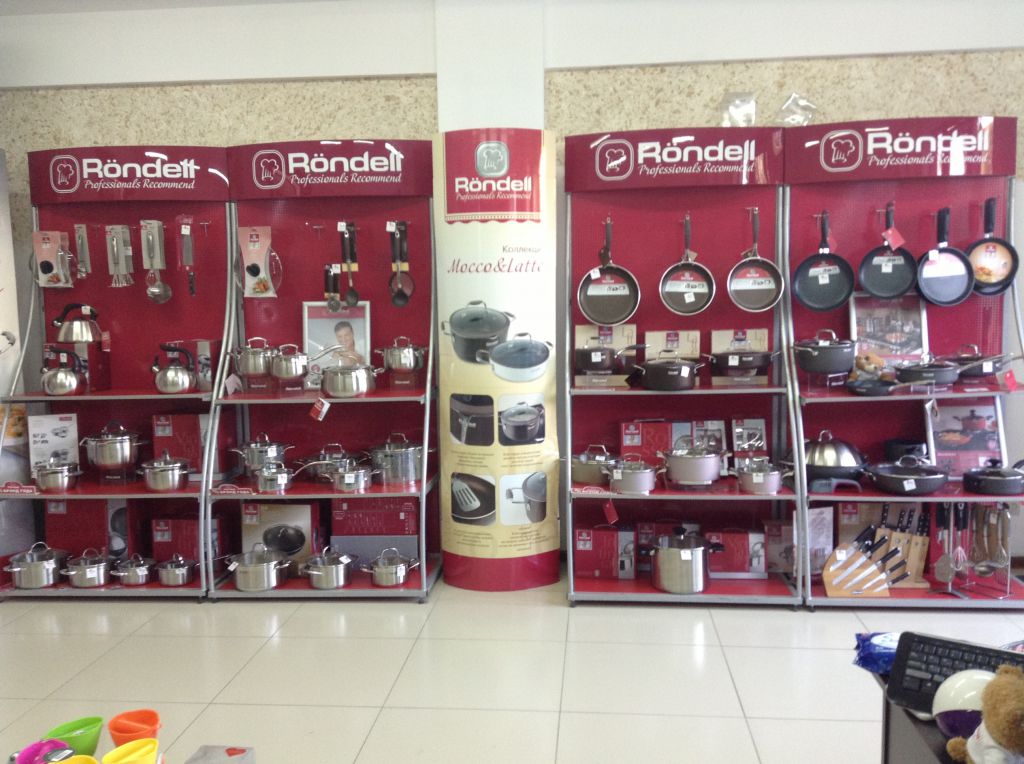 In the shop there are the famous brand name: Rondell, Fissman and others. In the shop there are pans, pots of different sizes and many small accessories for the kitchen.