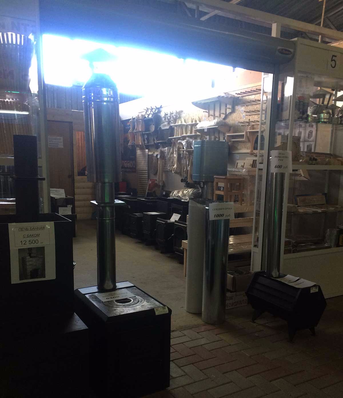 The shop is located in one of the pavilions of the largest construction market of Moscow. The store ovens, iron and steel products for interior, wooden products, appliances for space heating.