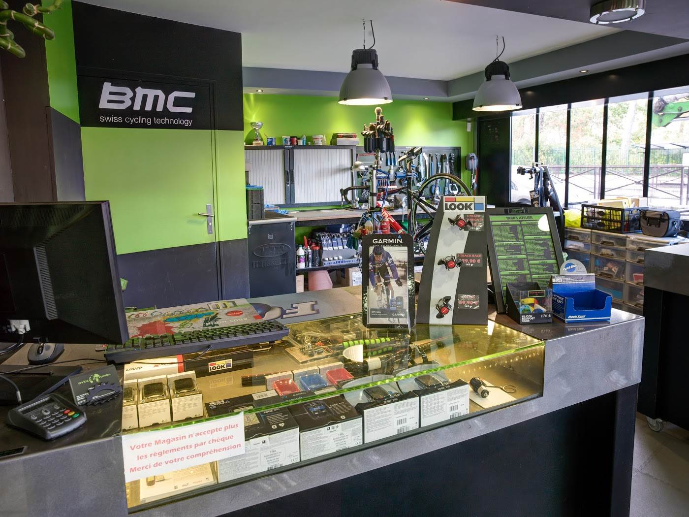 The store engages in bicycle spare replacements and other accessories.
