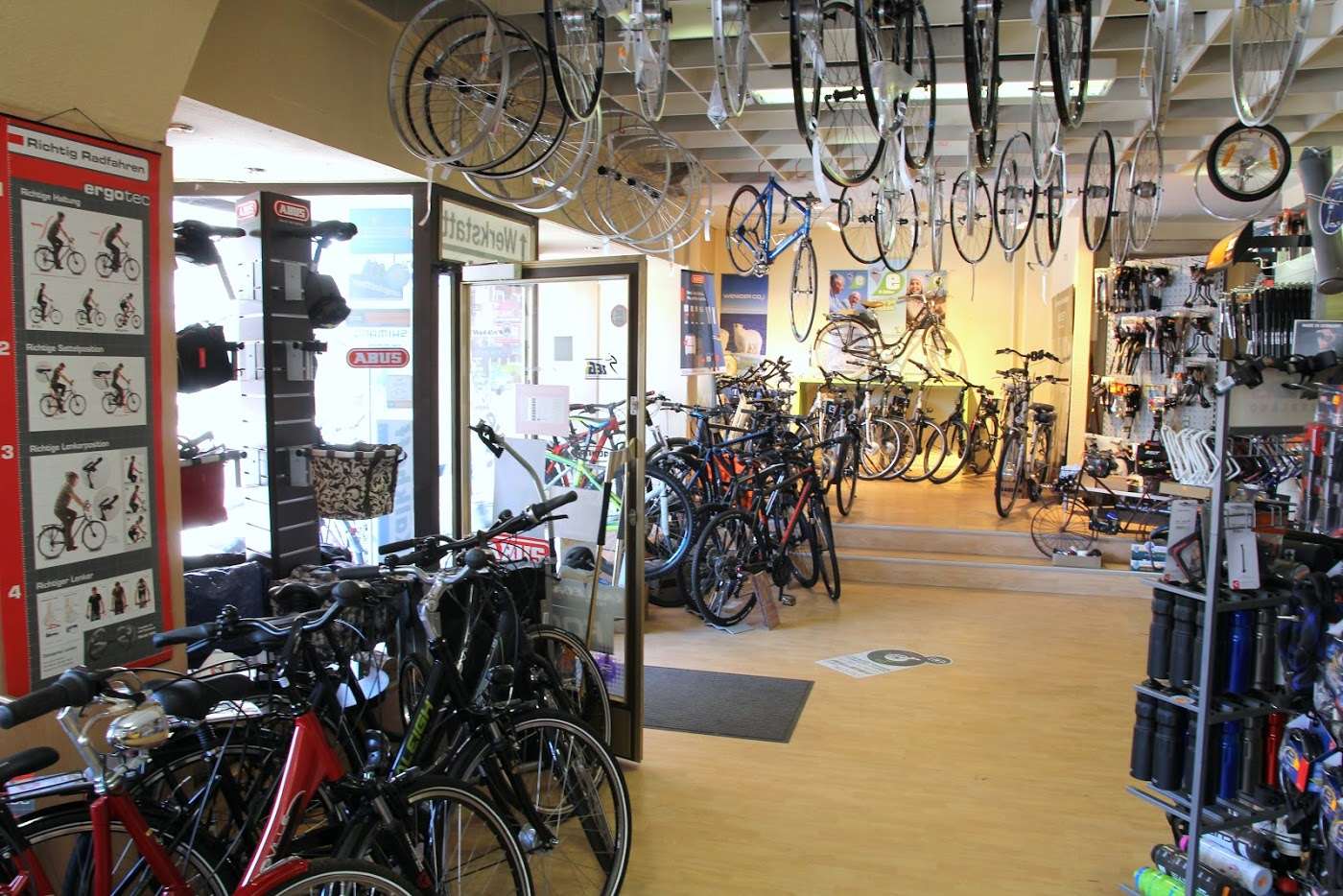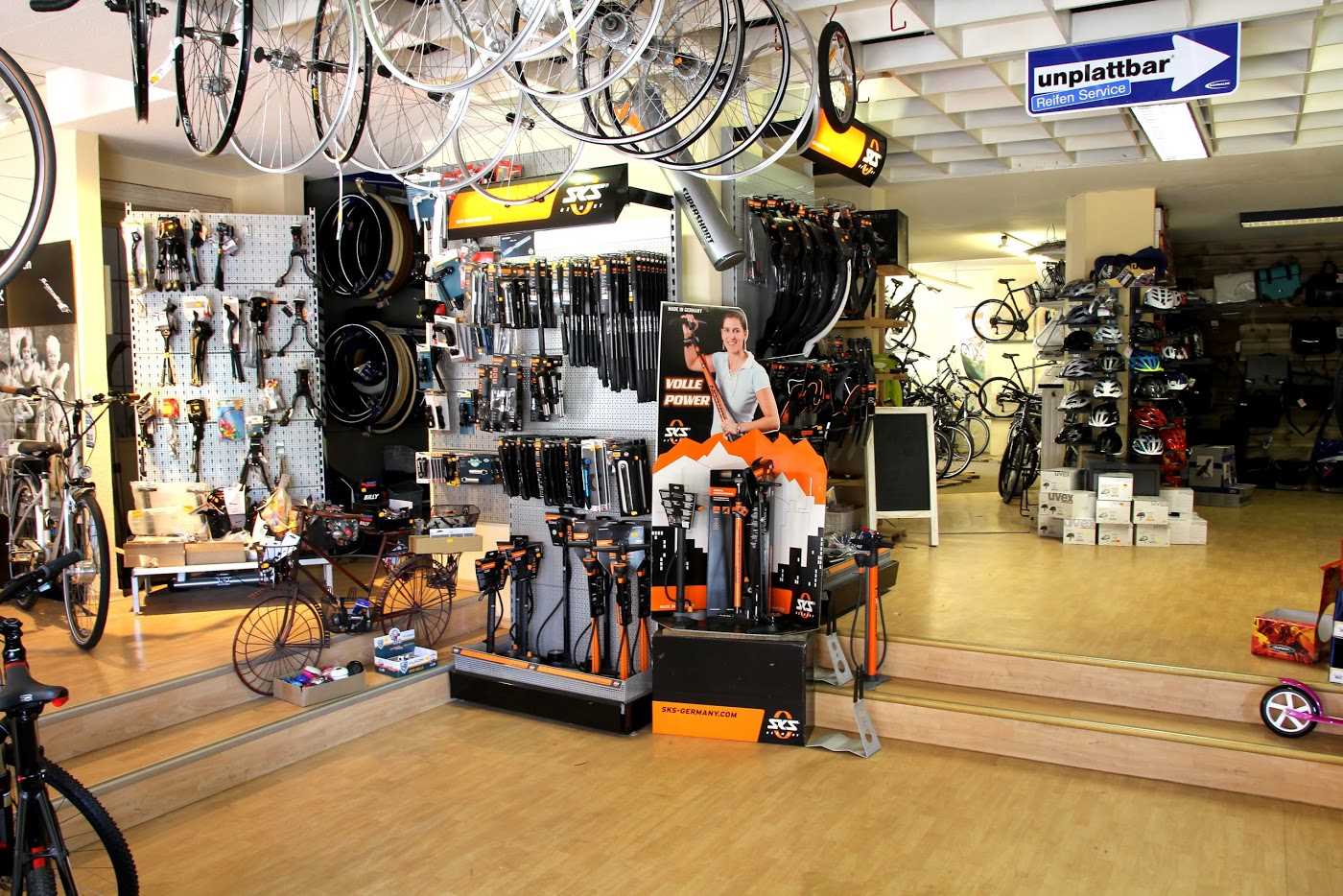 The store engages in bike spare replacements and other accessories.